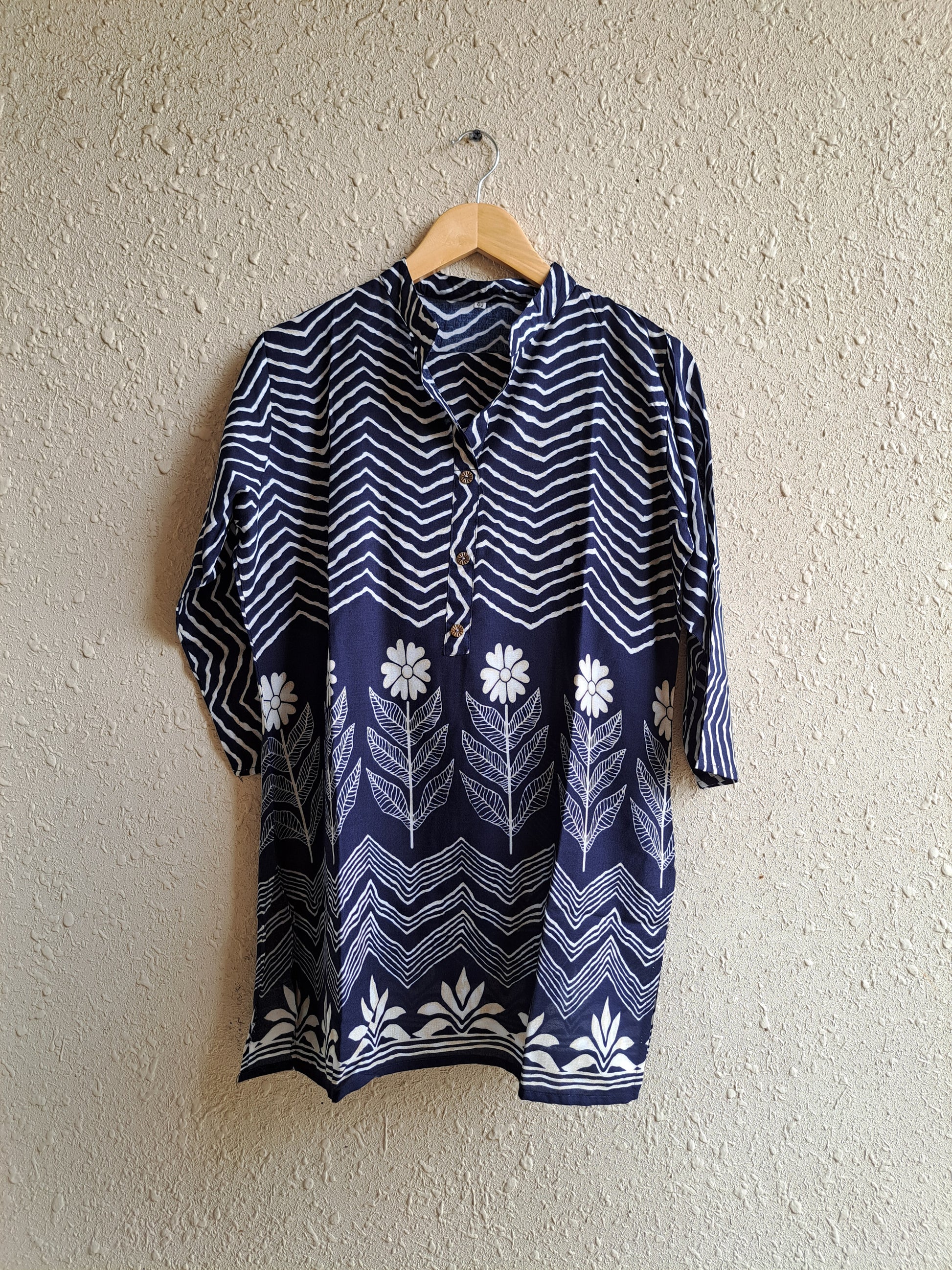 Midnight Bloom Pure Cotton Co-ord Set (Dark Blue)