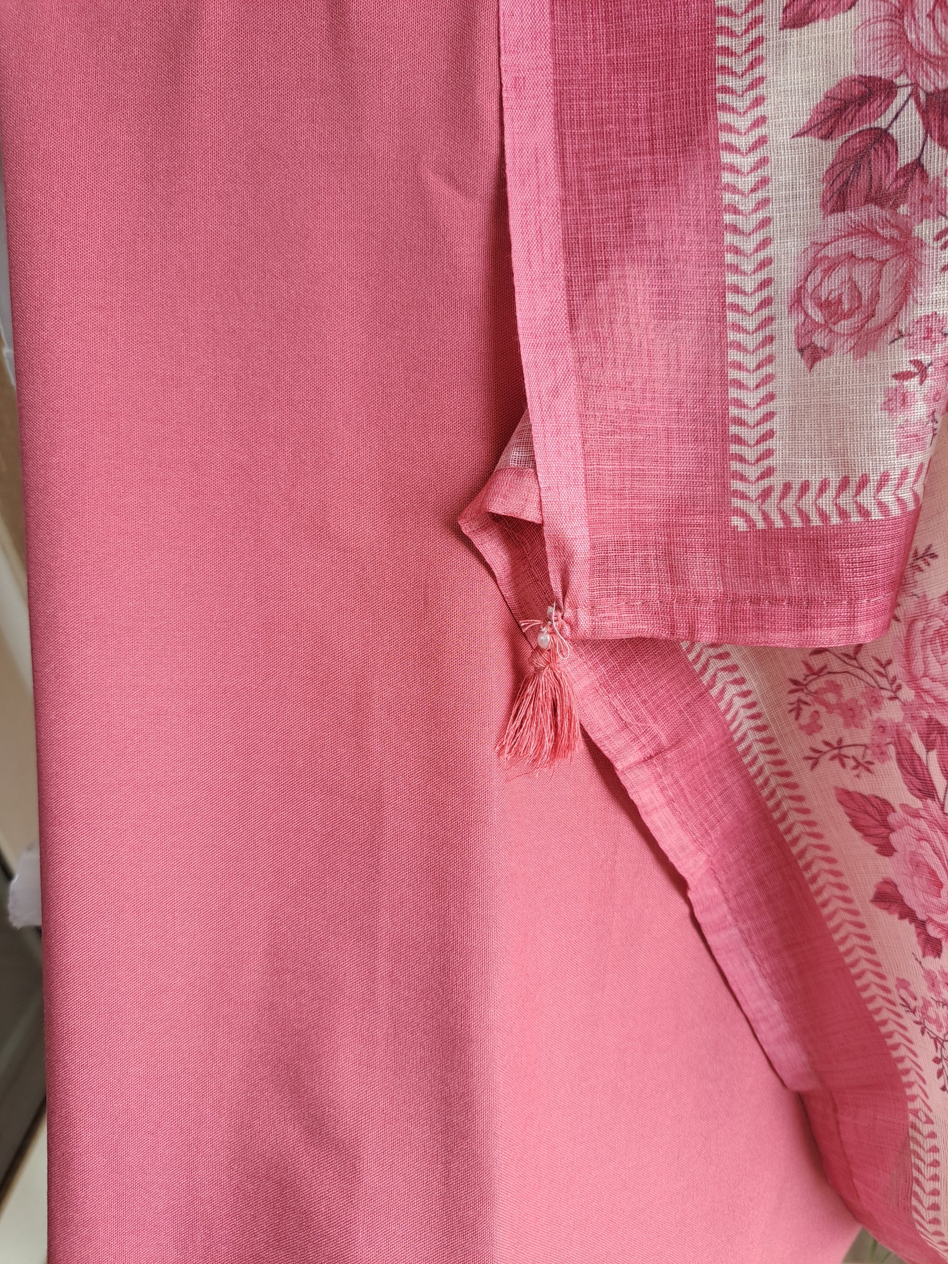 The plain rust bottom provides a balanced base, while the Maheshwari dupatta steals the spotlight with detailed block prints, all-over Kantha stitches, and tassel accents that bring movement and grace.
