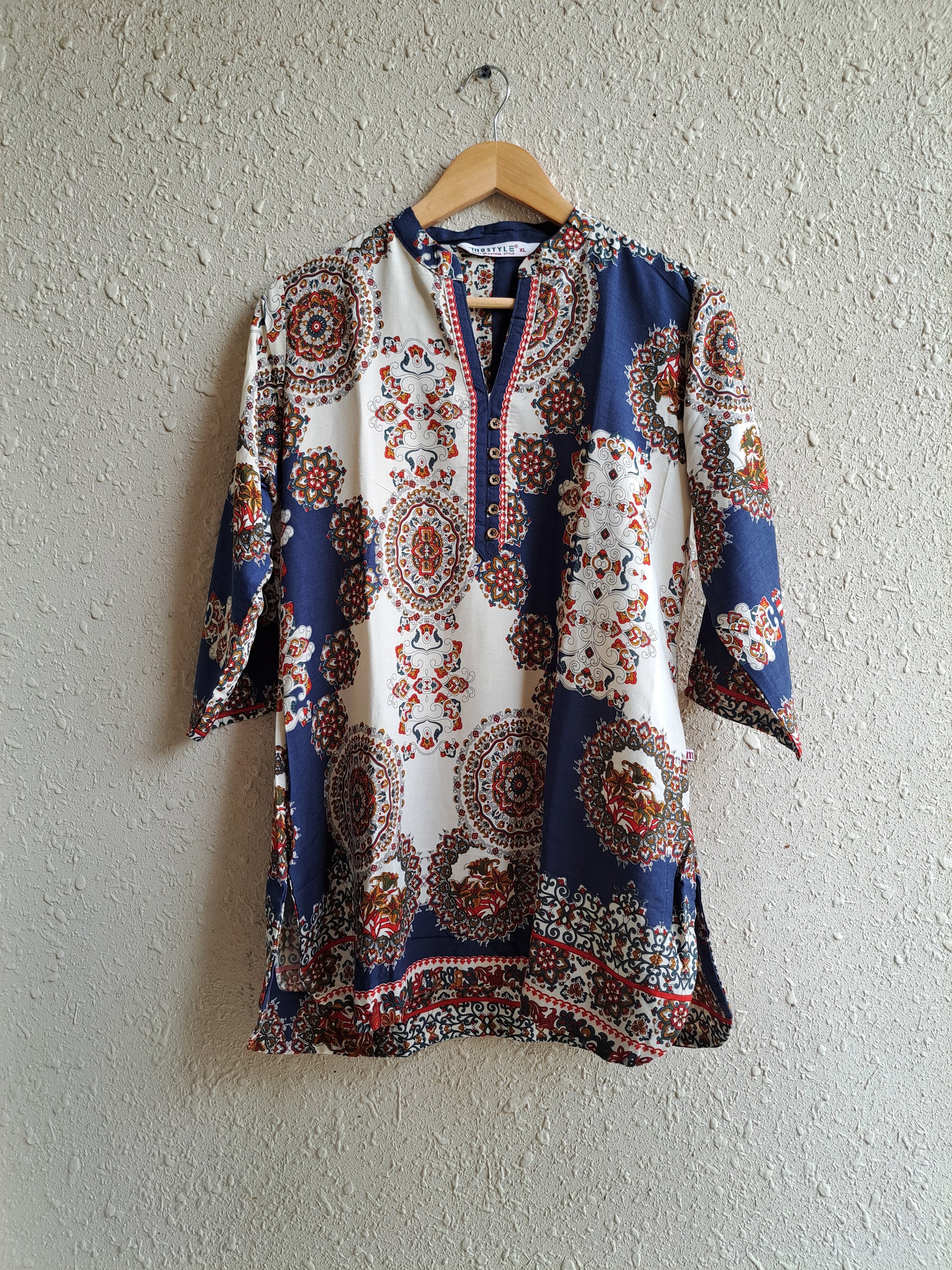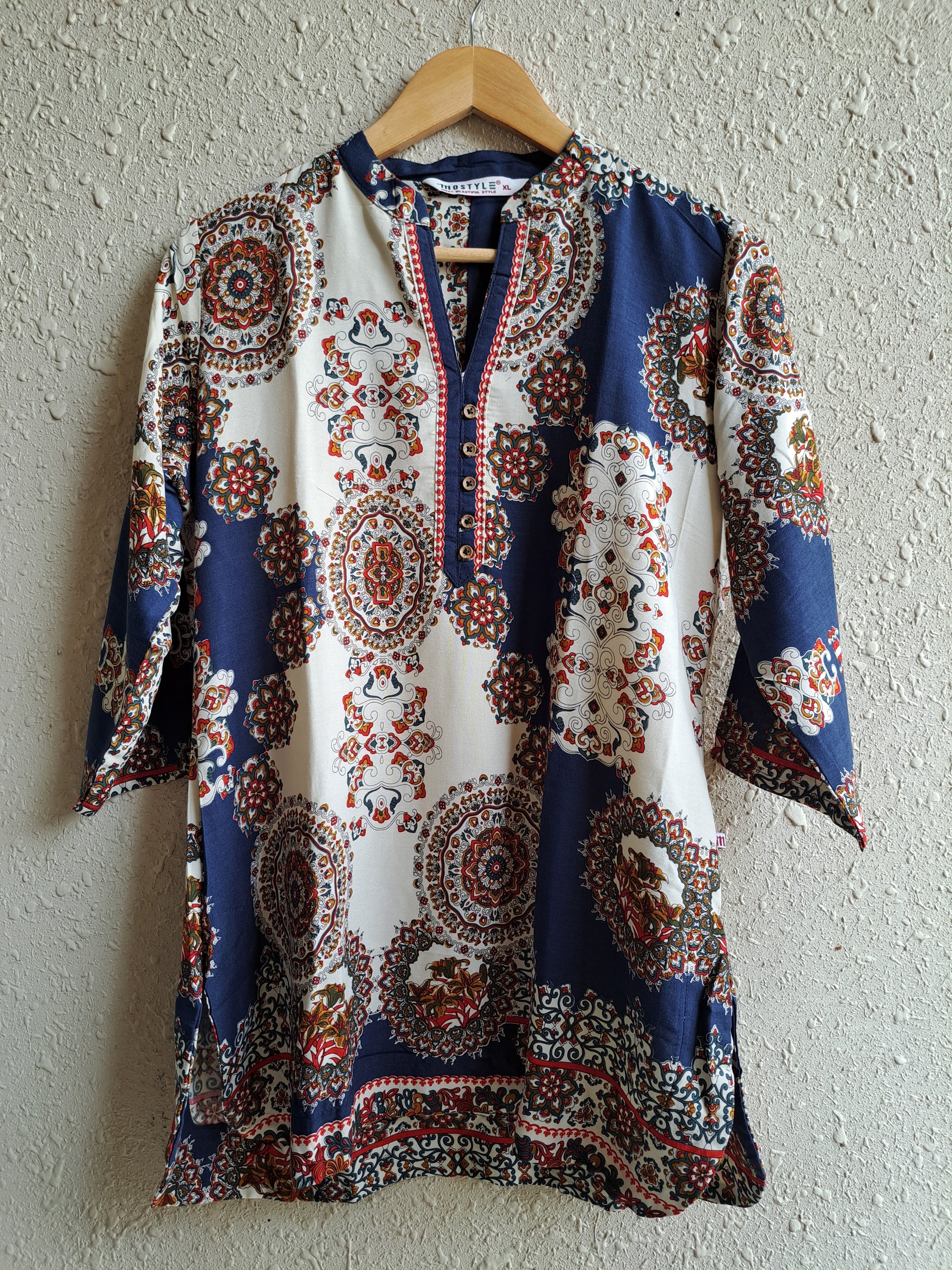 🕌 Elegant medallion/mughal motif print in deep navy, ivory, and earthy tones
